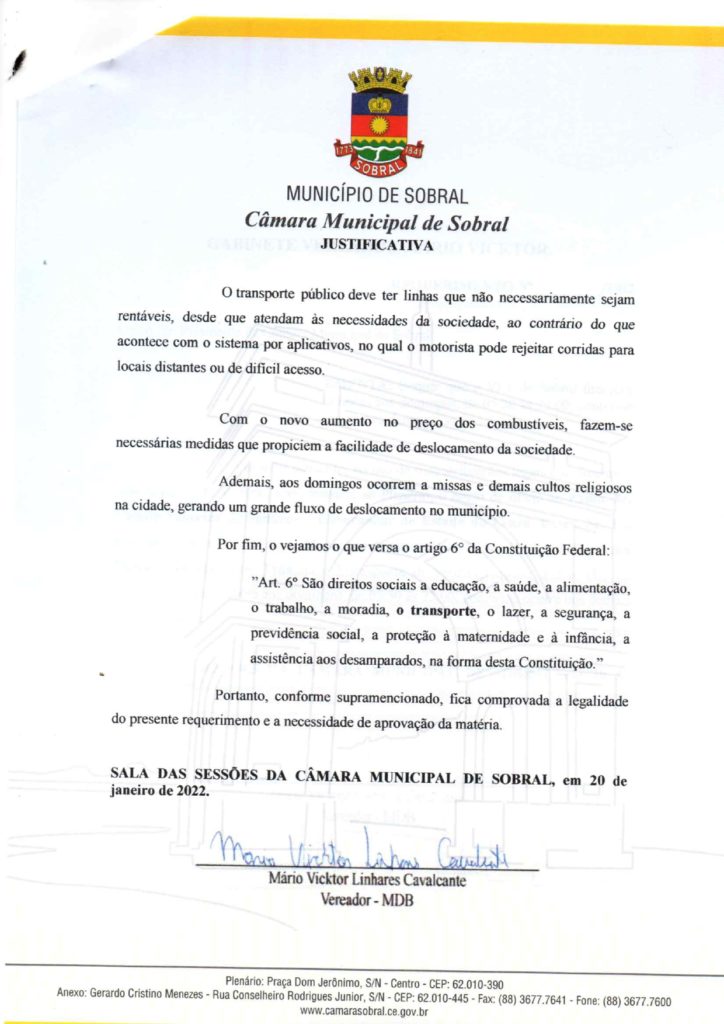 O parlamentar usa como justificativa a questão do aumento dos preços dos combustíveis , fazem-se necessárias as medidas que propiciem a facilidade de deslocamento dos sobralense estendendo aos domingos.